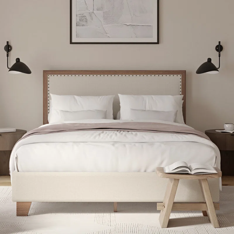 أضف لمسة راقية وعصرية إلى غرفة نومك مع هذا السرير المصنوع من خشب المطاط الصلب بتشطيب الجوز الدافئ. يأتي السرير بلوح رأس مبطّن بقماش فاخر بلون كريمي، ومُزين بحواف معدنية أنيقة تضيف طابعًا مميزًا للتصميم. تصميم عملي وأنيق بتركيبة متينة وسهلة التركيب، يجمع بين الأناقة والراحة والجودة. مثالي لعشاق البساطة العصرية، دون الحاجة إلى صندوق دعم للمرتبة.