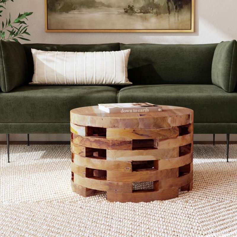 تعد طاولة القهوة الدائرية المصنوعة من الخشب الصلب خيارًا رائعًا لإضفاء أجواء طبيعية وجذابة على غرفة المعيشة. مصنوعة من خشب الساج المتجدد والمزروع يدويًا، تتميز بتصميم دائري فريد مع فتحات مستطيلة تعكس جمال الحبيبات الطبيعية للخشب. بقطر يبلغ 60 سم، تُعتبر هذه الطاولة إضافة مميزة أمام الأريكة أو بجانب السرير كطاولة جانبية.