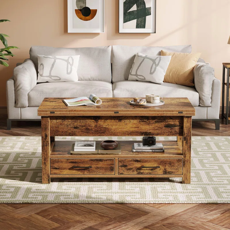 • طاولة قهوة متعددة الوظائف: يتيح لك السطح القابل للرفع تعديل ارتفاع الطاولة بسهولة لتلبية احتياجات الأنشطة مثل استخدام الكمبيوتر المحمول، الكتابة، أو تناول الطعام أثناء الجلوس على الأريكة.