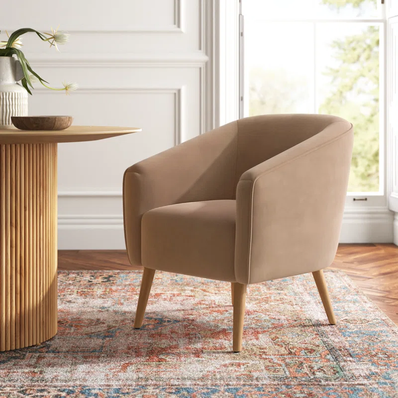 يتميز هذا الكرسي بذراعين بتصميم كلاسيكي بأسلوب البرميل، مما يضيف لمسة دافئة ومرحبة لأي مساحة. الإطار الحديدي مثبت على أربعة أرجل من الخشب المعالج بتشطيب خشب الصنوبر الفاتح. المقعد ومسند الظهر مغطاة برغوة عالية الكثافة ومبطنّة بقماش شيرلينغ صناعي براق بلون كريمي. هذا التصميم المتين مقاوم للخدوش، مما يجعله خيارًا رائعًا للمنازل التي تحتوي على حيوانات أليفة أو أطفال. بالإضافة إلى ذلك، يأتي مع تجميع جزئي فقط، مما يسهل إضافته إلى المساحة الخاصة بك فور وصوله.