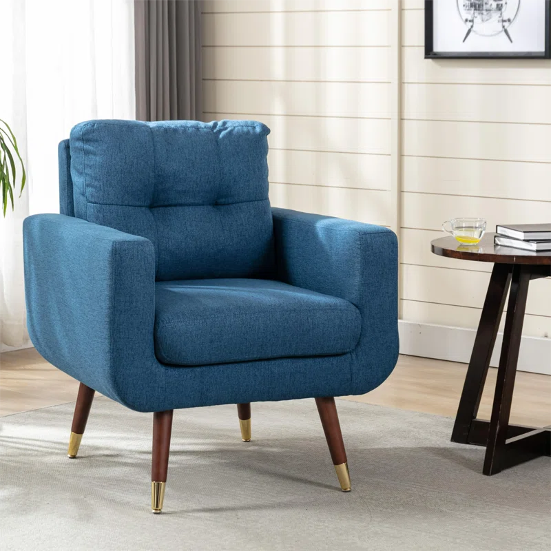 أضف لمسة من الفخامة إلى ديكور منزلك مع هذا الكرسي المميز الذي يجمع بين الأناقة والعملية. يتميز بظهر مُبطن يعكس الرقي ويوفر دعماً ممتازاً للظهر، بينما يوفر قماش الكتان الراحة والتهوية المثالية خاصة في الأجواء الحارة. تأتي الأرجل بمزيج متين من المعدن والخشب، مما يعزز الاستقرار ويضفي لمسة عصرية على التصميم. الوسائد العريضة والناعمة تدعوك للاسترخاء، والبنية القوية للكرسي تضمن متانة طويلة الأمد. هذا الكرسي ليس مجرد قطعة أثاث بل هو قطعة فنية تنطق بالراحة والأناقة، مثالية لأي مساحة عصرية.