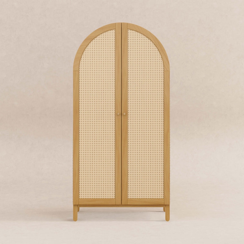 تم تصميم هذا الدولاب الخيزران الراتان بعناية وتجميعه بالكامل ليجمع بين الوظيفة والتصميم العصري، مما يجعله إضافة أنيقة وعملية لغرفة الطفل أو أي مساحة منزلية. تضيف الألواح المصنوعة من الراتان الطبيعي على الأبواب المزدوجة لمسة عضوية مميزة، بينما توفر آلية الإغلاق المغناطيسي مظهرًا ناعمًا وإغلاقًا آمنًا. يحتوي الداخل على قضيب ملابس مثبت مسبقًا وأربع رفوف واسعة، اثنتان منها قابلتان للتعديل لتلائم احتياجات التخزين المتغيرة مع نمو الطفل. سواء كنت ترتب الملابس أو البطانيات أو المستلزمات اليومية، فهذا الدولاب يوفر مساحة عملية وأناقة دائمة لسنوات طويلة.