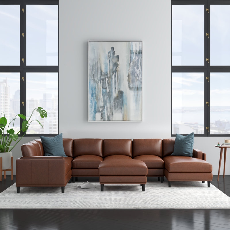 يتكون هذا الركن الواسع المكون من ست قطع من تصميم يواجه الزاوية اليسرى، ويتسع لسبعة أشخاص، ليكمل المظهر العصري في غرفة المعيشة أو الصالة. يشتمل على شيزلونج، أريكة بمقعدين، ثلاثة مقاعد فردية، ومسند قدمين، جميعها مغطاة بجلد طبيعي ناعم بلون بني غني. يمكن تعديل ترتيب هذا الركن بطريقة تناسب أي مساحة. الإطار مصنوع من الخشب المصنّع ويستند إلى أرجل من الخشب الصلب، بينما تدعم النوابض الحلزونية الوسائد المليئة بالرغوة لتوفير أقصى درجات الراحة، كما يمكن إزالة الوسائد بسهولة للتنظيف بالمكنسة الكهربائية. بمجرد الانتهاء من التجميع، يمكنك الاستمتاع بساعات طويلة من مشاهدة الأفلام أو القراءة على هذا الركن.