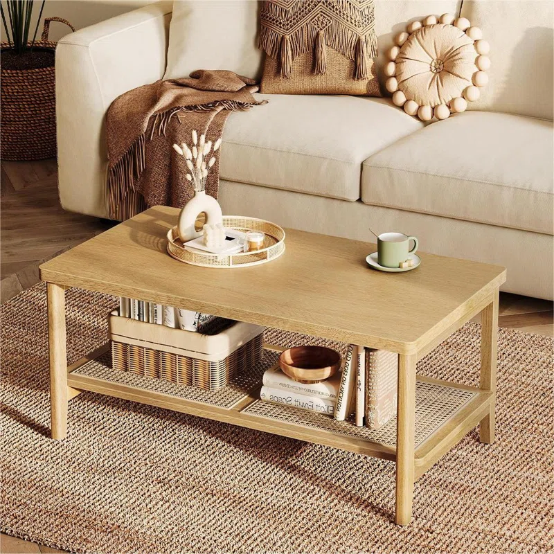 هذه الطاولة التي يبلغ طولها 100 سم هي البطل الهادئ الذي يحتاجه صالونك. مع سطح مستطيل مصنوع من الخشب الصناعي وألواح القصب المنسوجة، تجمع بين أجواء الشاطئ المريحة والوظائف العملية. نحن نحب الرف الكبير أسفله لتخزين المجلات أو أجهزة التحكم عن بعد أو آخر الكتب التي قرأتها. تصميم الأرجل المستقيمة يقدم مظهرًا نظيفًا وبسيطًا يتناسب بسهولة مع أي ديكور. بالإضافة إلى ذلك، يعني التشطيب المقاوم للبقع أنه يمكنك الاستمتاع بفنجان قهوتك الصباحي دون أي قلق.