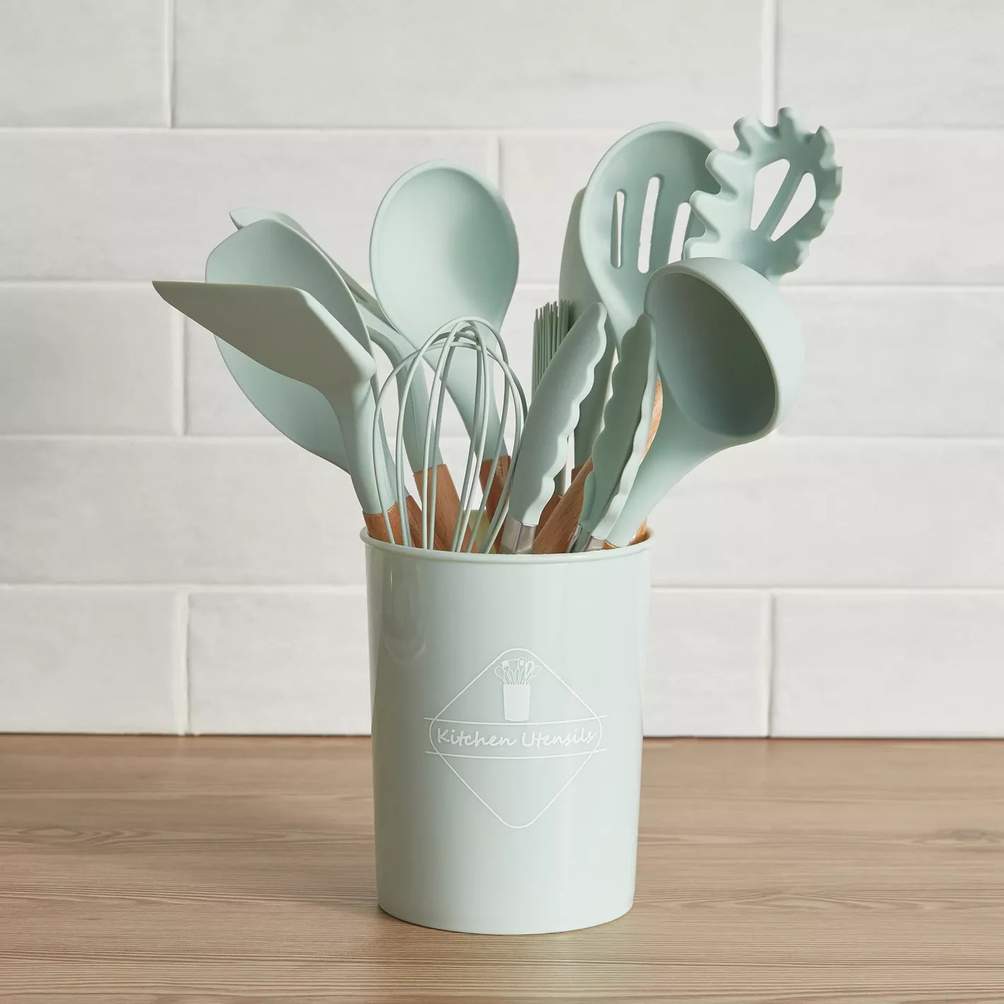 طقم أدوات مطبخ عصري مكوّن من 11 قطعة سيليكون آمن للطعام، تصميم أنيق يوفر راحة وجودة في الاستخدام اليومي.